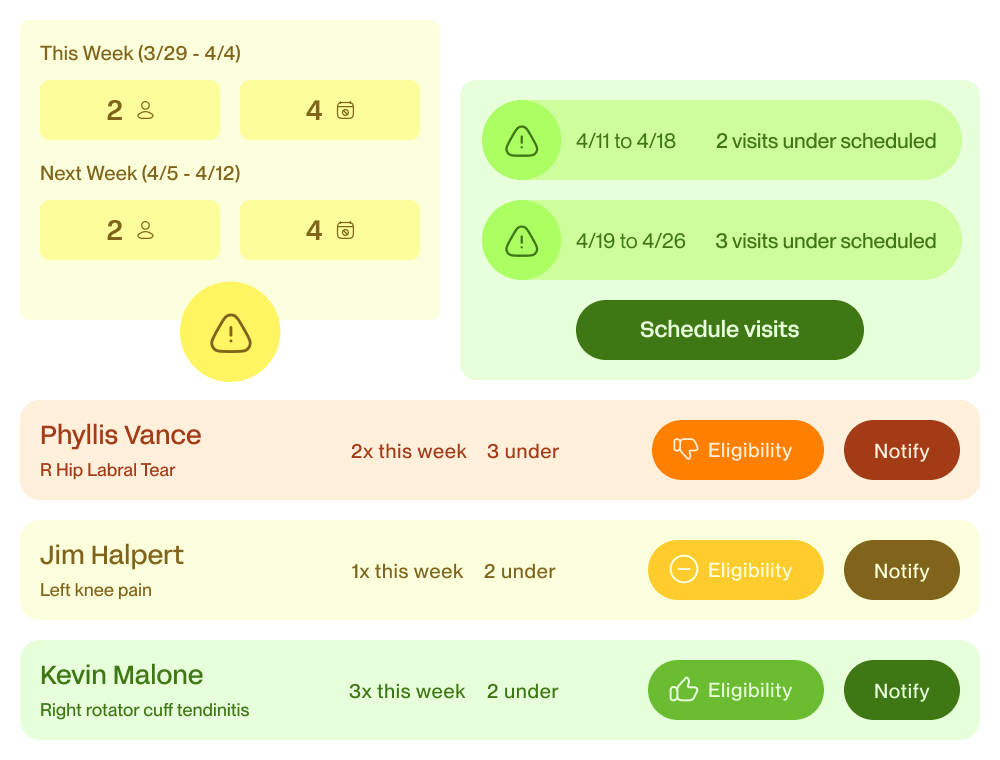 Clinicians and staff can see and take action on all upcoming, in progress, and incomplete visits from one, simple screen. Jump between visits with a single click